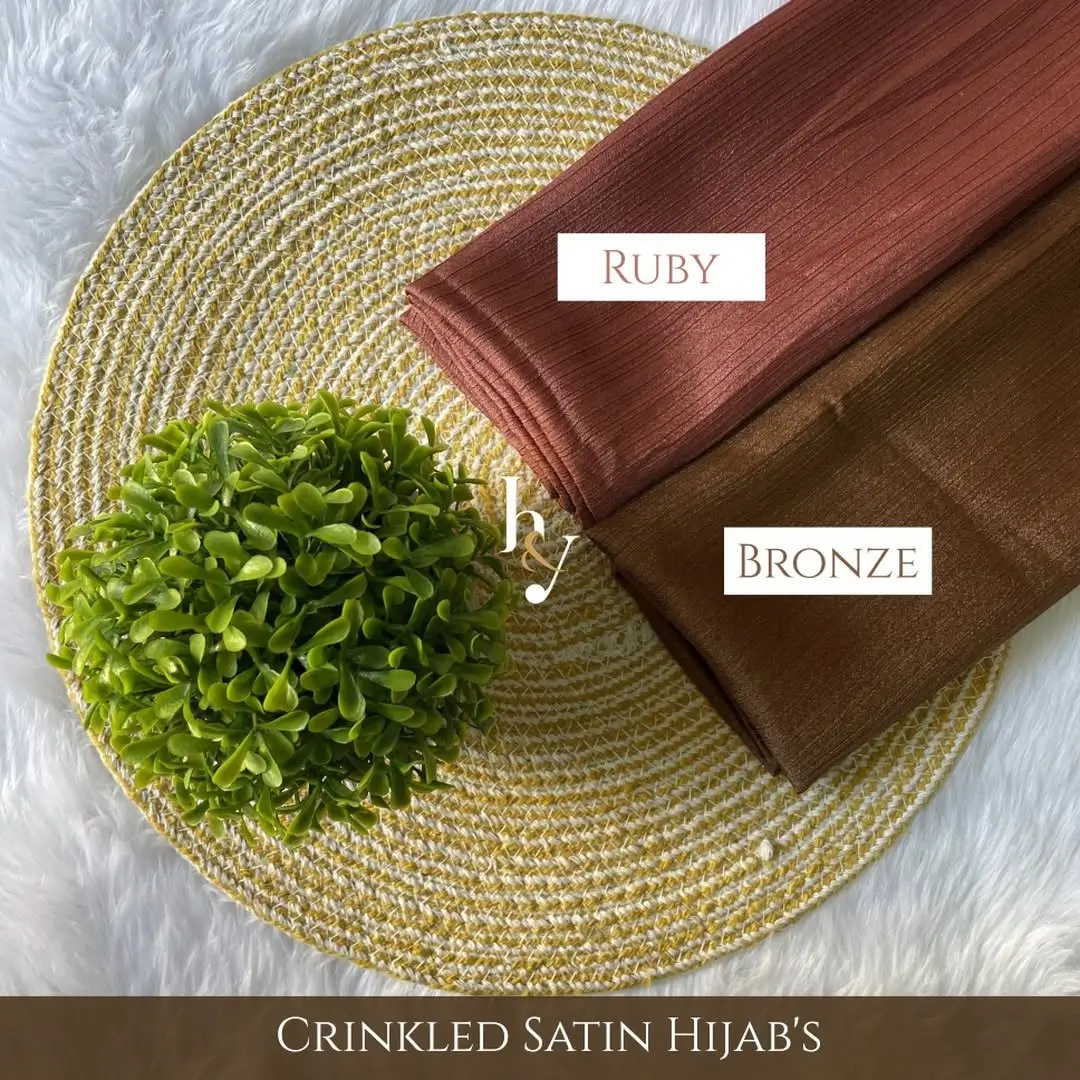 Indulge in luxurious elegance with our stunning Crinkled Satin Hijab in two rich, captivating shades – Ruby and Bronze! This exquisite duo brings depth, warmth, and sophistication to your hijab collection, perfect for women who appreciate timeless beauty with a modern twist.