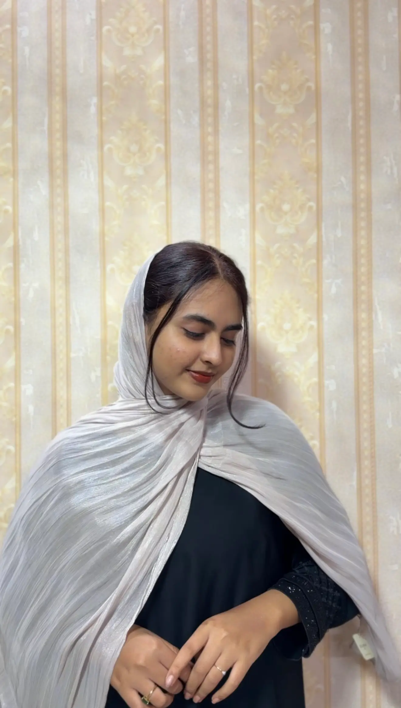 Long enough for generous coverage and light enough to layer seamlessly, this dusty grey shimmer hijab is your versatile essential for occasions that call for elegant simplicity.