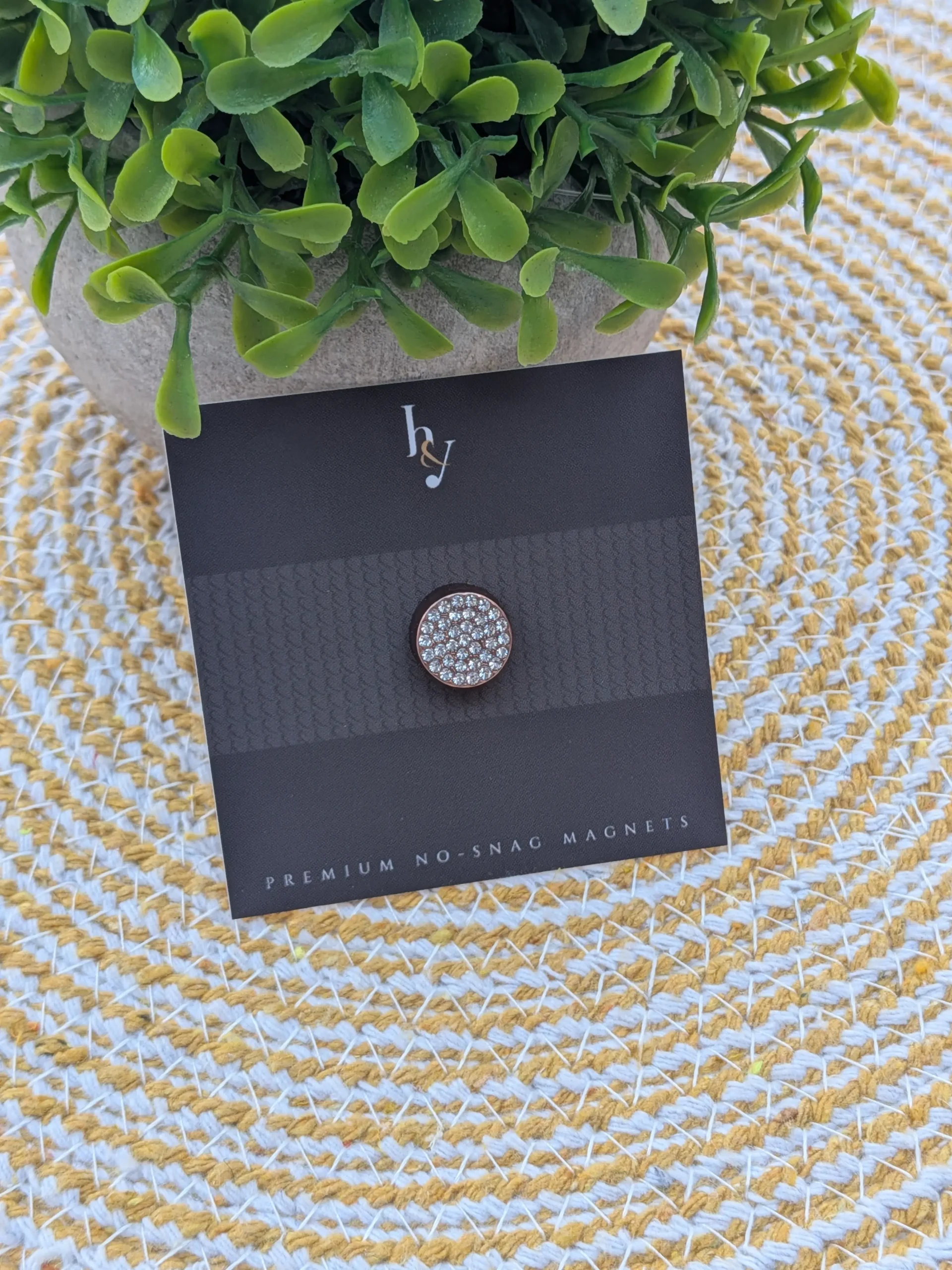 The sleek, rounded design sits flat against your hijab, creating a smooth, polished look with just the right amount of warm sparkle. It’s perfect for securing hijab layers at the chest, under the chin, or anywhere you need reliable hold. The magnets are strong enough to hold multiple layers of fabric securely, yet easy to reposition when you need to adjust your style.