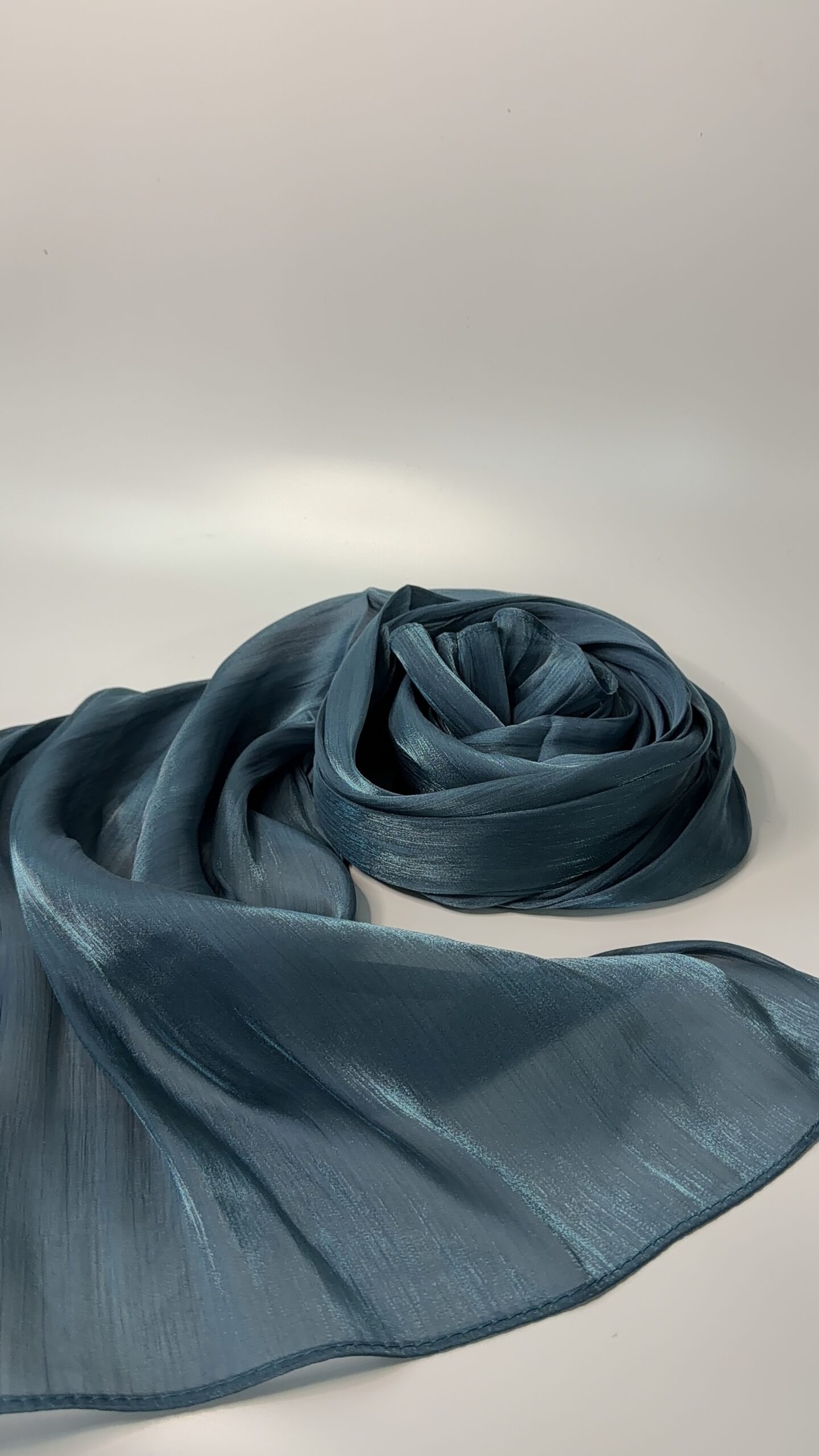 Make a stunning entrance with the Peacock Blue Premium Shimmer Organza Hijab. This mesmerizing piece is designed for the woman who loves to stand out with vibrant elegance at every celebration.