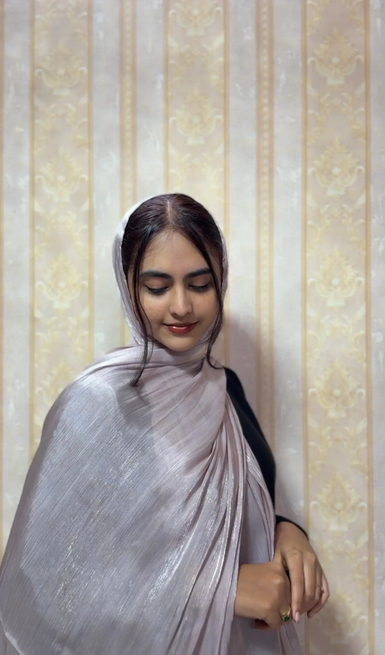 Long enough for generous coverage and light enough to layer seamlessly, this taupe brown shimmer hijab is your perfect choice for occasions that call for warm elegance and sophisticated neutrals.